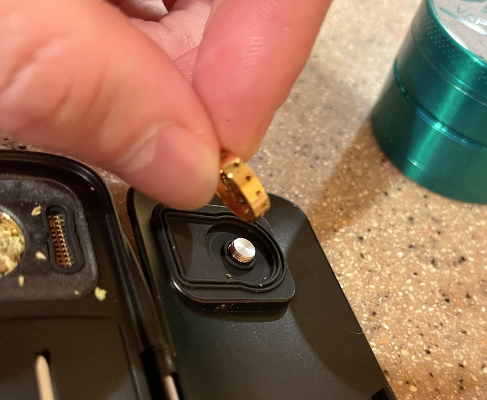 I would not call the Legacy Pro all encompassing because of the amount of internal moving parts. The cover at least is permanently in place via the latch and when fully assembled sessions are easy breezy, even more so than the Mighty+ which requires you to fully remove the cooling unit. On my fourth session with the Legacy Pro I went to discard the already vaped herb in the trash and the airpath screen fell right in. The trash was full with chicken bones and a bunch of other pretty gross things so I was not going to go fishing for a 2 cm screen. Thankfully AirVape includes a backup screen and rubber seal so I could keep the AirVape Legacy Pro review going without delay.