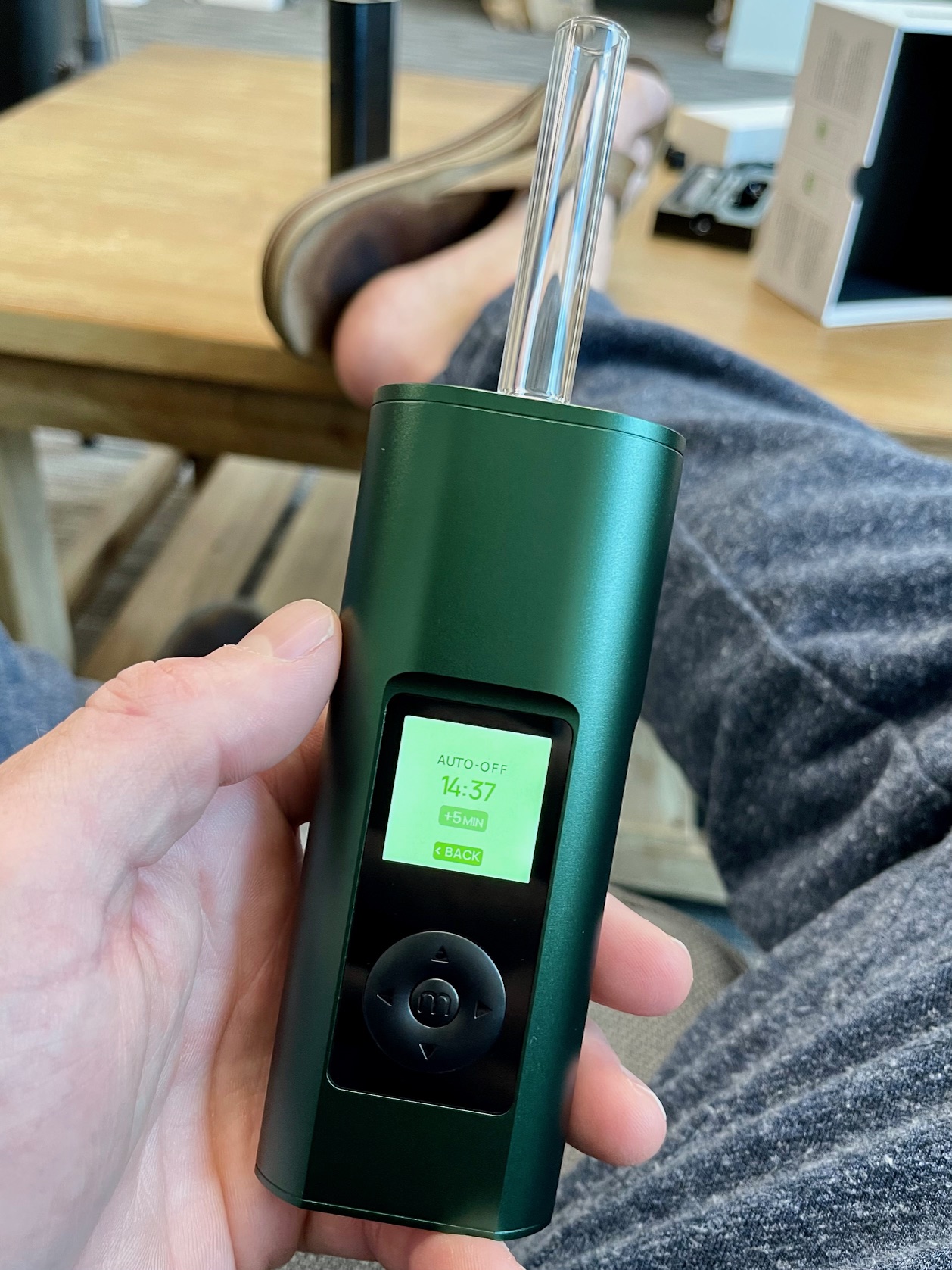 The Arizer Solo 3 is a much larger vaporizer than its predecessors in the Solo 2 and Solo 2 Max. This increase in size is attributed to the much larger battery. The Solo 3 is large enough with long glass stems that it makes it hard to pocket like you can the Arizer Argo. This like other Arizer portables (besides the Argo) will make it a good around the house or on a walk with the dog portable, but with its size and weight not something you would even want to take to a baseball game or camping trip.