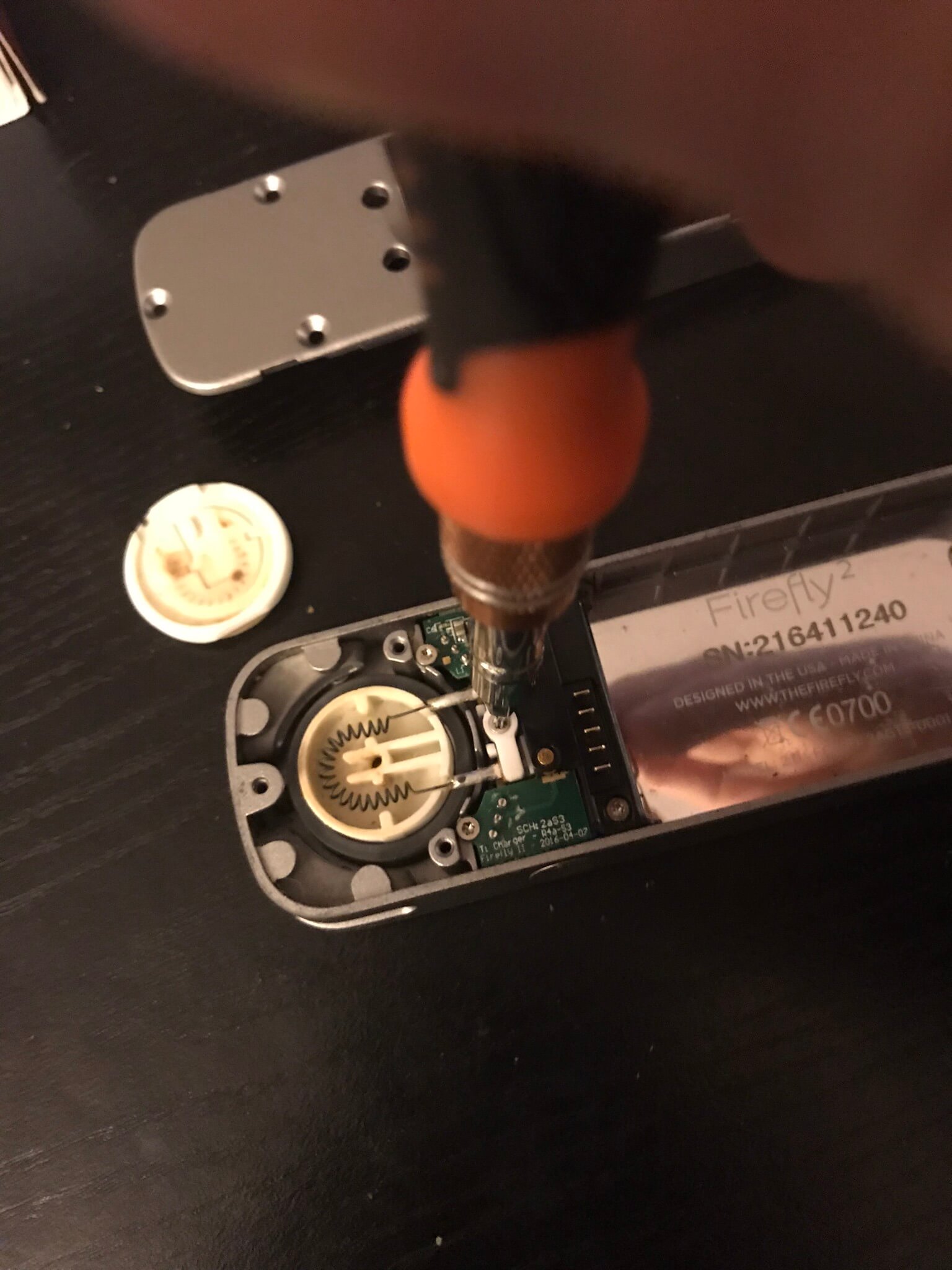 Having a few Firefly 2 vaporizers laying around the warehouse, I noticed that some Firefly 2’s performed better than others, under the exact same conditions. I had cleaned them all as good as possible (without disassembling) and even tried using a small pin to open up the clogged holes on the heating element plate. To no avail – I could not get my dirty Firefly 2’s to function to their former glory.