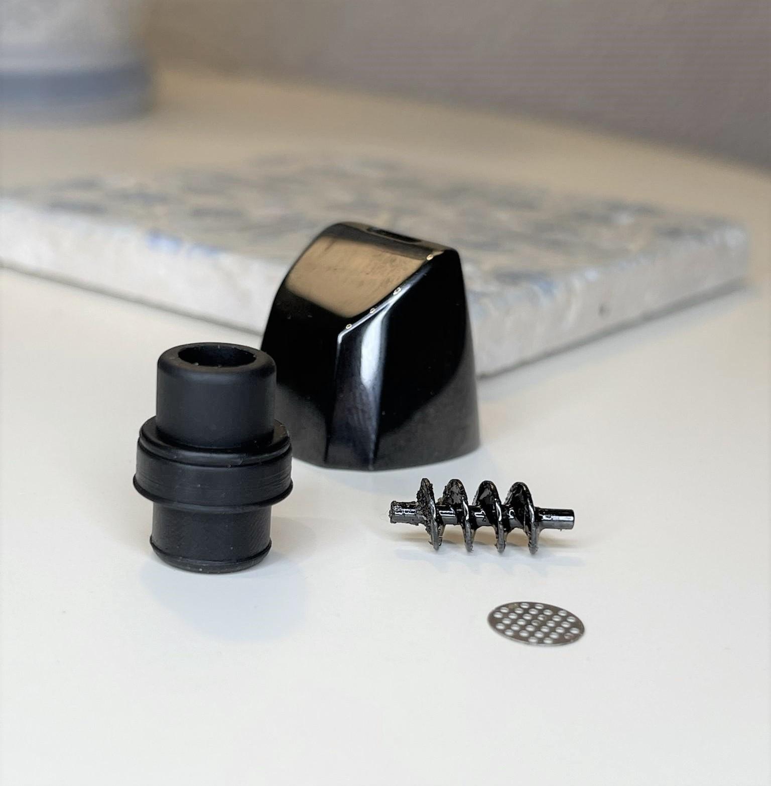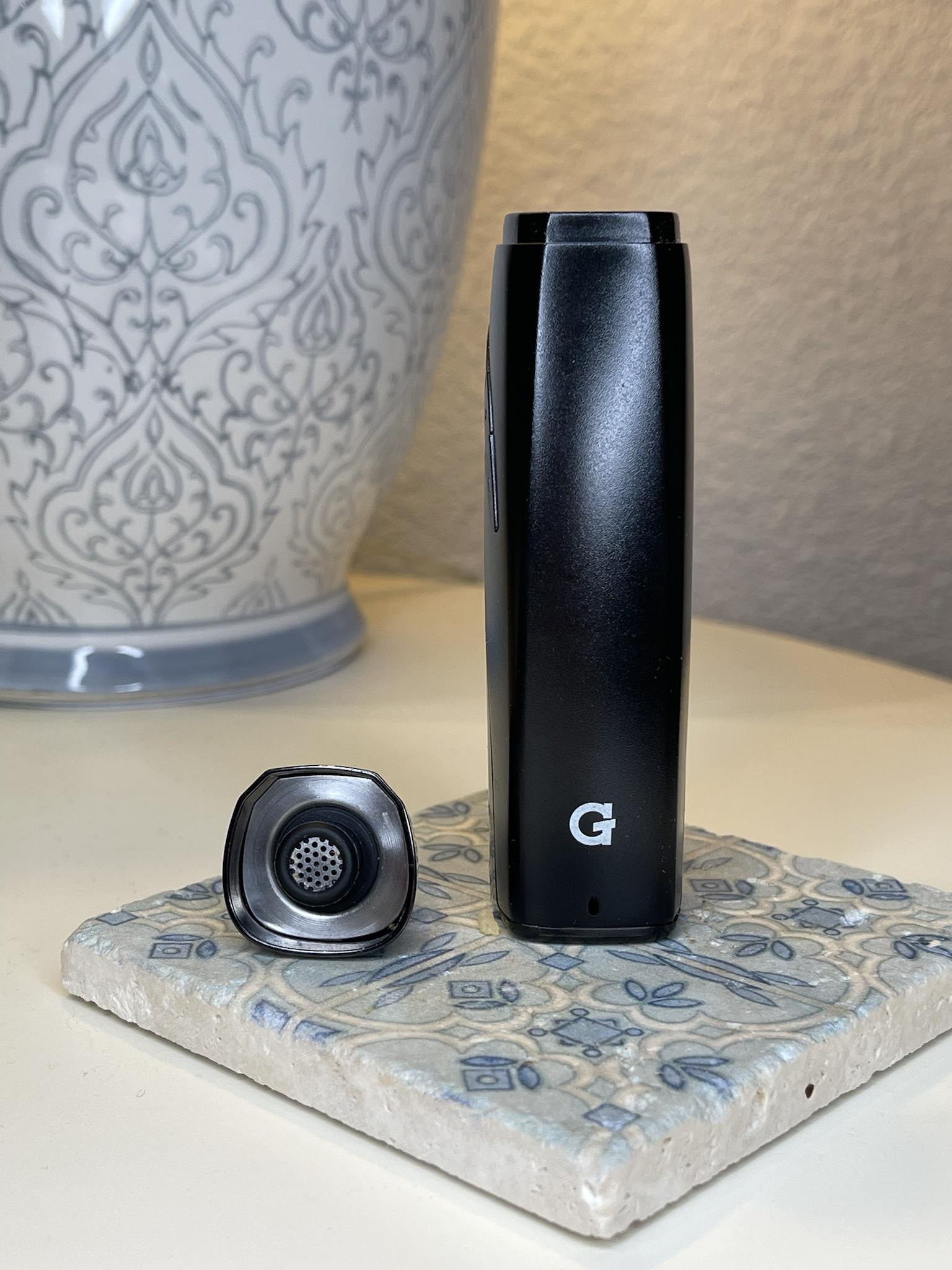 The G Pen Elite 2 is comprised of two major pieces, the body and mouthpiece. The body is made out of zinc Alloy. The body is sturdy and when not on, it is hard to even tell the device has an OLED screen on the backside. The body also houses a neat little stir tool / pick Grenco has worked in that slides out like a spy device. This is for stirring and repacking mid session. The mouthpiece is magnetic and made of zirconia. On the inside of the mouthpiece is a silicone grommet with a stainless steel screen and a helix zirconia vapor path. The cylindrical chamber is narrow and made of standard ceramic.Â