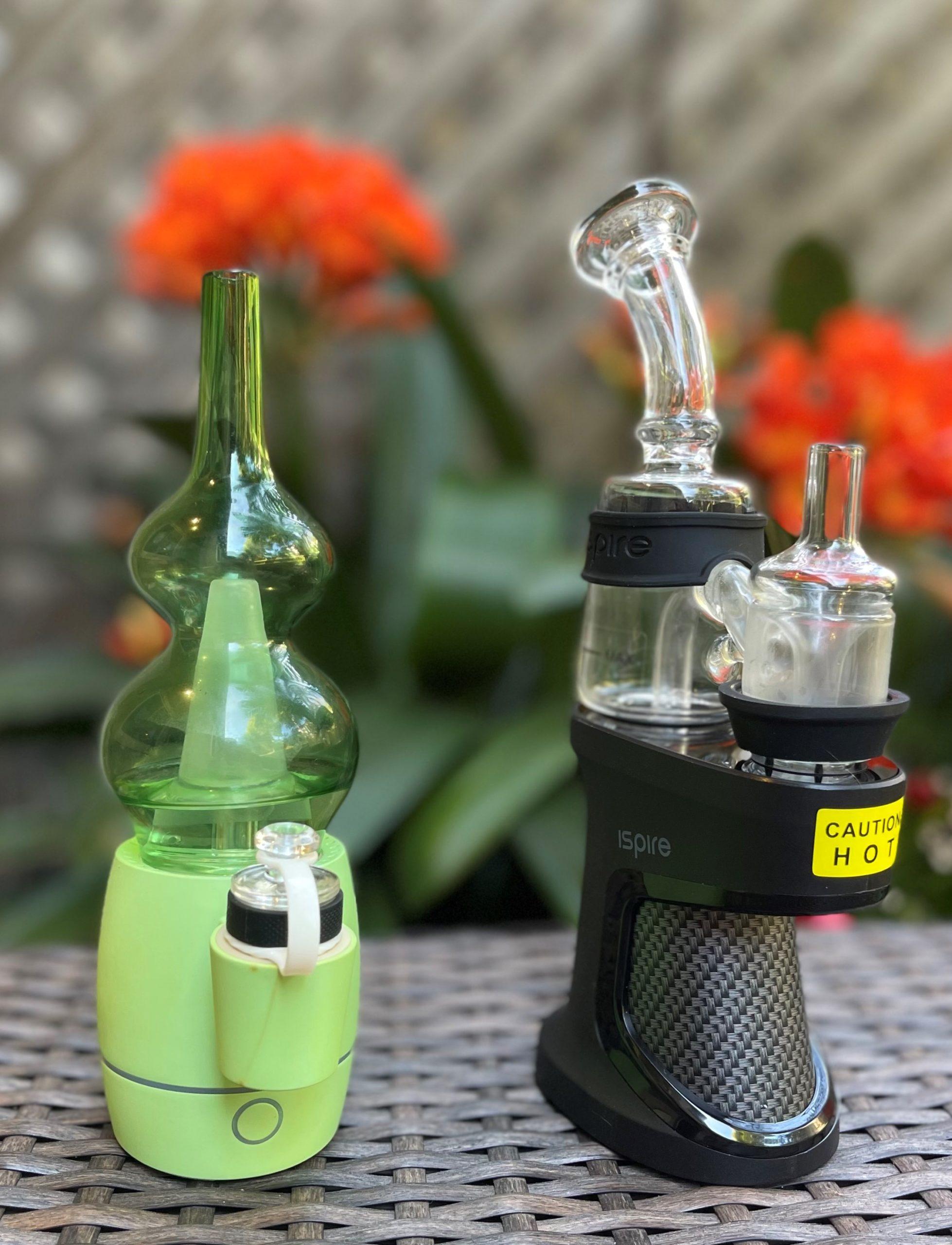 The Daab by Ispire is the latest entrant to a crowded field of electronic dab rig vaporizers. During our Daab review it was clear from the start Ispire’s design differentiates itself enough from the many brands that piled into the space blatantly copying the design of the Puffco Peak seeking to cash in on Puffco’s success. The Ispire Daab is an induction heated dab rig and uses Borosilicate glass cups instead of a conductive atomizer. The LED readout and user interface make it easy to operate without an app and its glass on glass make for amazing flavor.