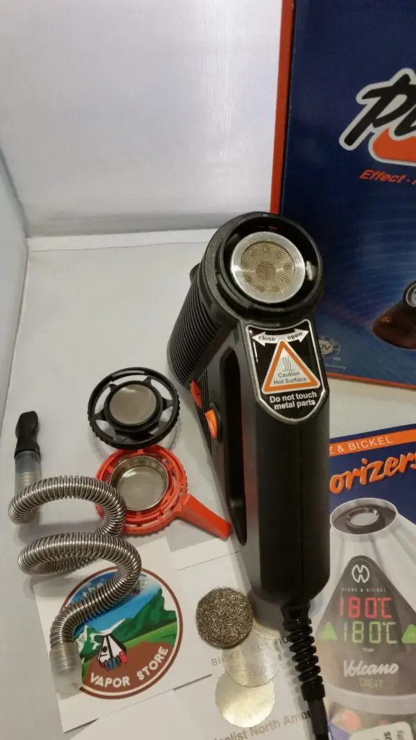 This lightly used Plenty Vaporizer , from the makers of the Volcano comes the Storz & Bickel Plenty. The Plenty boasts a unique design that seems like something you’d find at your local hardware store; don’t let this turn you off of it though! The Plenty Vaporizer plugs into a wall outlet like most desktop vaporizers and features an attached mouthpiece and a handle, that is designed to hold in your hand for direct draws. The heat exchanger is equipped with a double helix to ensure efficient air heating, while controls allow you to choose from mellow to dense vapor – it’s your choice really.
