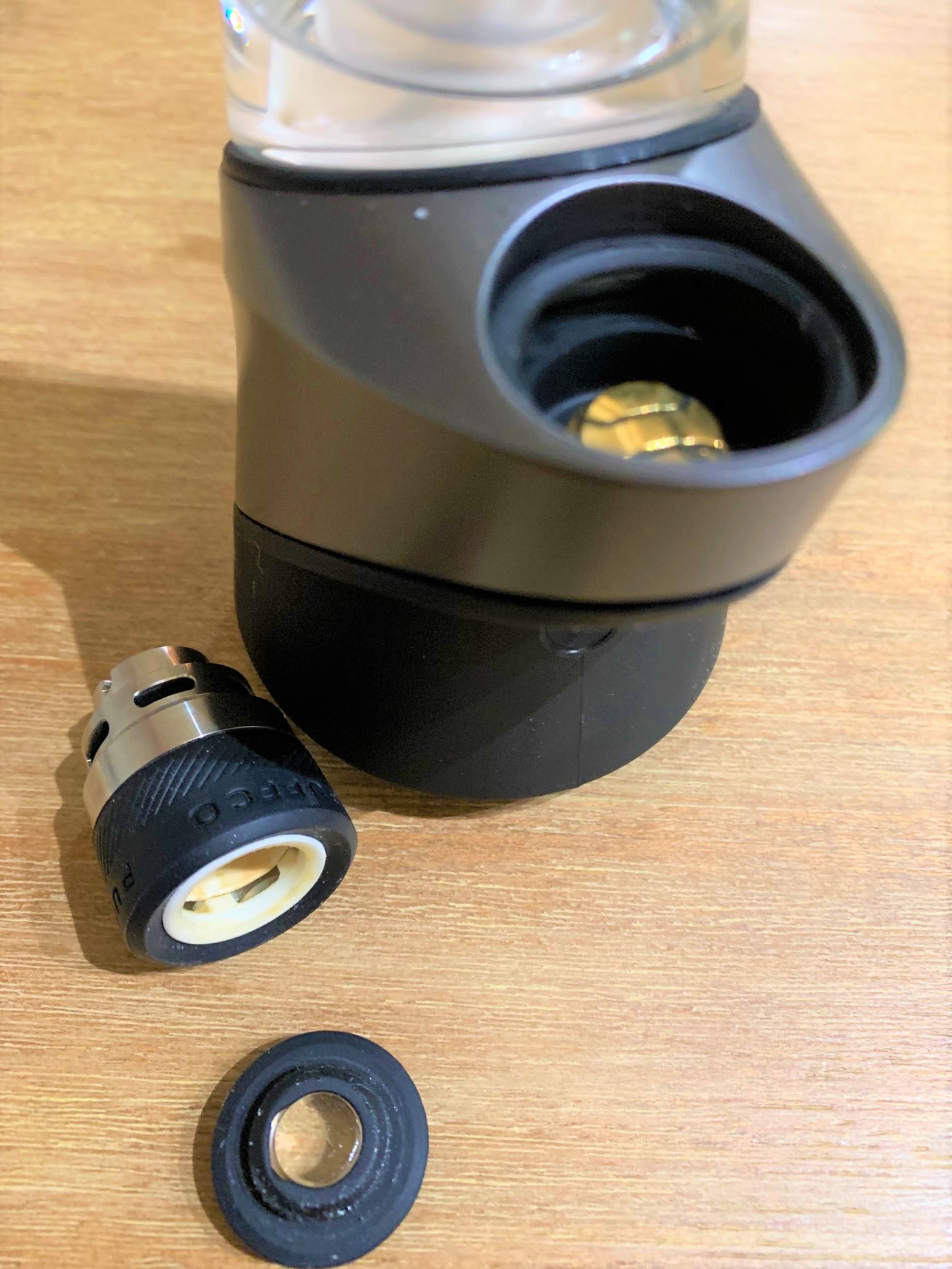The Carb Cap snaps into the chamber lending itself to some functional improvement. It is a refinement that Puffco deserves accolades for as they didn’t just go with the cheap run of the mill glass carb caps which will break or fall off when on the go (or even during a session). The new oculus carb cap, as it’s dubbed, snaps in place so you don’t have to babysit it with your other hand while you draw.Â