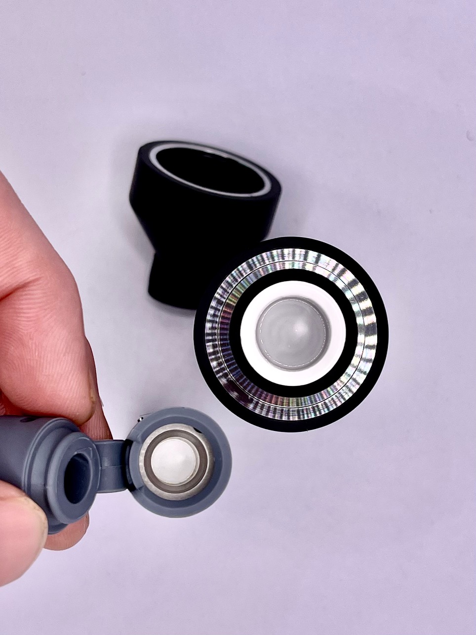 The Aeris comes with the Intelli-Core atomizer. This is the exact same atomizer which comes with the Carta 2. This provides some benefits like being able to swap it out with your Carta 2 (if you own this vaporizer). As well the Aeris will function with the Intelli-Core Max if you purchase the adapter ring. This really can produce some XL level clouds. This would be like being able to use the Puffco 3DXL Chamber with the Pivot. If that was possible the Pivot battery would be drained in about 30 seconds time. The Pivot’s chamber is considerably smaller, being the smallest 3D Chamber out of all the 3D chamber devices of Puffco’s line up. A small but mighty polished ceramic that heats from the bottom and the sides and has smart temperature sensing to adjust to keep heat consistent while you draw. Both chambers (the Intelli-Core and Puffco 3D) are the current top of the line in the concentrate vaporizer space and provide the best technology on the market. The recurring theme is the the Aeris aims to be a pocketable Carta 2 rig where the Pivot is looking to compete more with prefilled cartridges allowing you to feel better about vaping your own fresh pressed extracts in a device the same size of a pen.Â