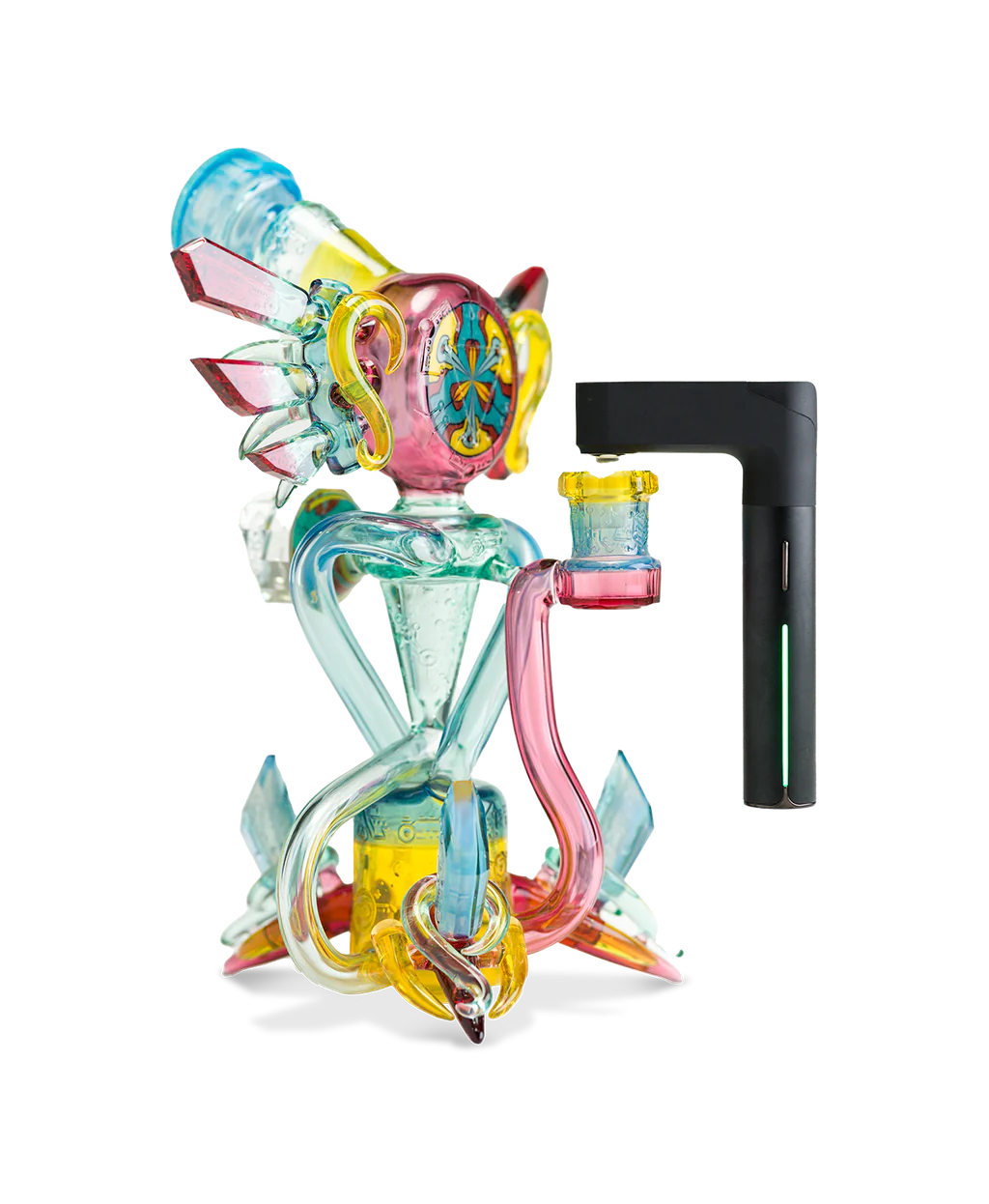 Puffco really leads the way with designing their products to be customized by users. No where is this more apparent than with the Puffco Proxy. The Pivot despite its size and stature can be attached to a standard rig with purchase of the Pivot Glass Adapter . From here turning it all the way up to the secret Easter Egg mode temperature will have you putting down large clouds with your glass rig. There is also a slew of customized Pivot glass tops and joystick caps which can be outfitted to the Pivot 3D chamber by removing the silicone mouthpiece not too many are fond of. These are not sold by Puffco but 3rd party artisans. Another reason why Puffco receives so much love from their customers as they lift up designers who can elevate their designs and get some exposure for themselves as well. The Aeris provides some great options for customizations as well. While they do not sell an adapter for use with a rig, with the Intelli-Core Atomizer and ability to add on the Intelli-Core MAX you don’t really need it. There are glass artists who have designed some nifty carb caps for the Aeris as well.