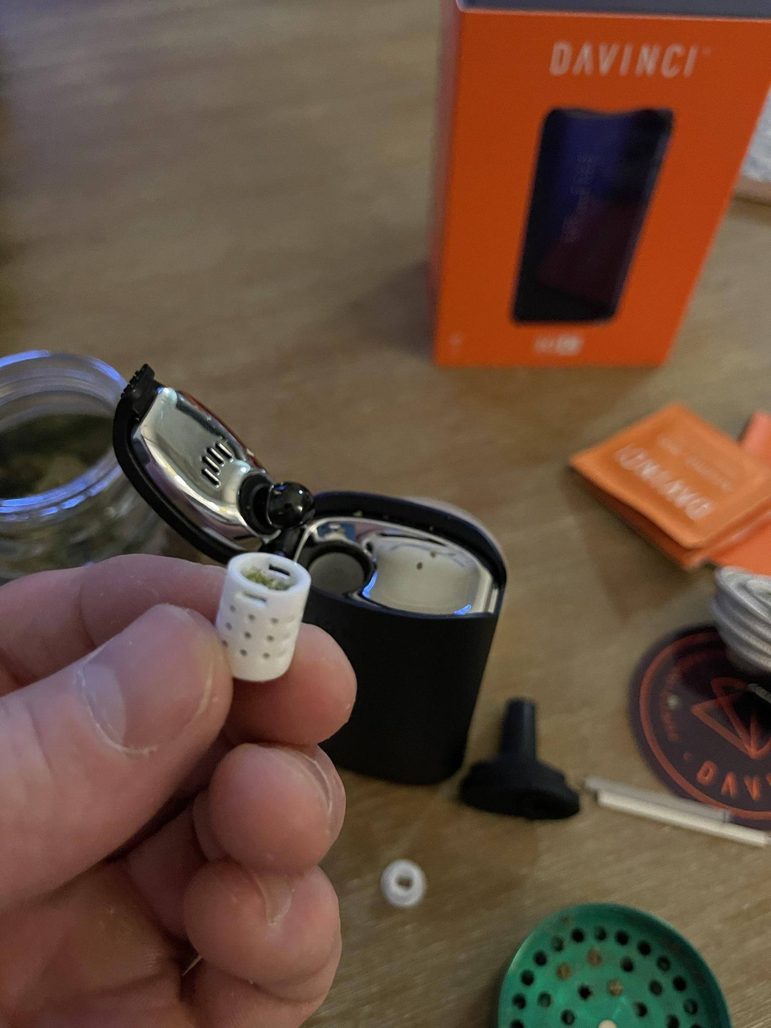 Taking out the vapor path is a tad difficult, (I had to use the Storz & Bickel Brush to get it out) which is also nice at the same time, as being more secure it won’t fall out and break which was an issue I had when cleaning the original IQ. The Vapor Path they use is the same as the Davinci IQ2, but instead of having a Zirconia stopper, it is the same polymer they use for the mouthpiece. The Flavor Chamber is an excellent spot to throw some added herbs. While Davinci once boasted this could double as storage for carrying herbs, any large amount in the airpath really inhibits airflow. If you do want to spruce up your flavor with spices or herbs in the flavor chamber, small amounts will do the trick, they just need to be pungent and aromatic. My favorite is mint.Â
