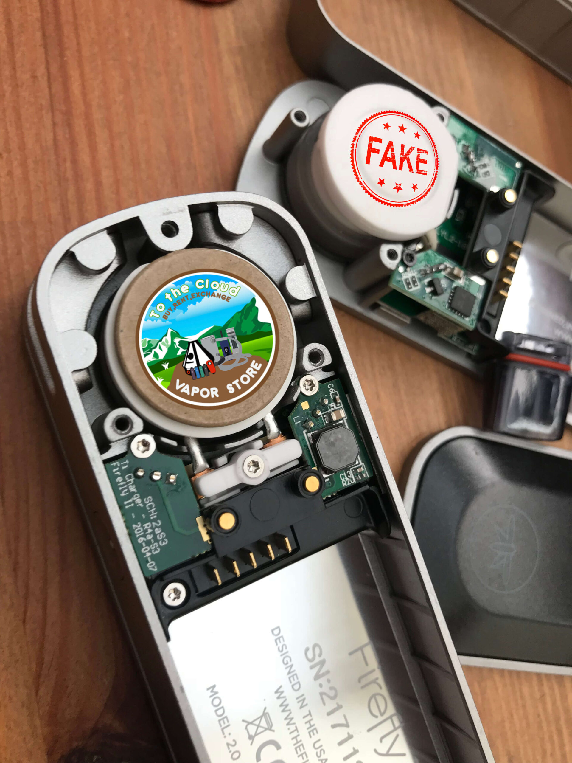 Well it took some time but the counterfeiters have cracked the code on the Firefly 2 , and quite literally. Up until now bluetooth vaporizers have been safe from cheap knock offs. The closest the Chinese came to a successful run with counterfeiting a bluetooth vaporizer was with the PAX 3, diverting buyers to a different app they themselves created – hardly a success and easy to spot. The bluetooth feature made spotting counterfeits as easy as syncing your vape with your phone, and it made our job much easier, not having to constantly warn the unsuspecting consumer. Years after the Firefly 2’s release the counterfeiters have managed to hack the app , permitting the fake devices to pair with the actual Firefly 2 app. What makes this more alarming is the timing and status quo. Given counterfeit Firelfy 2’s have not popped up until now and the uber popular vaporizer has been out since 2016 the assumption is there are no fakes of this model. Furthermore advice we have dimmsementated in the past said simply sync your device to the app, if it syncs , it’s legit. However not all is lost, counterfeiters make an inferior product and sell it for much cheaper. Riddled with cheap components and corners cut, the counterfeit Firefly 2 vaporizer is easy to spot. Below are some simple steps to spot and avoid the fake Firelfy 2s altogether.